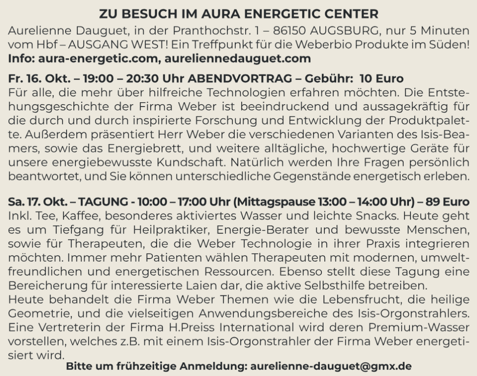 DIE FIRMA WEBER BIO-ENERGIE-SYSTEME ZU GAST IM AURA ENERGETIC CENTER